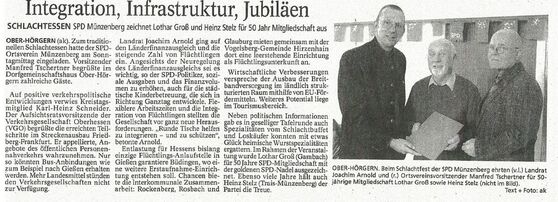 In der zurückliegenden Jahreshauptversammlung des SPD-Ortsvereins Münzenberg konnte SPD-Parteichef Manfred Tschertner wieder eine Anzahl von Mitgliedern herzlich begrüßen. Neben den Berichten aus Vorstand, Fraktion, Kreistag und Kasse wurde im Rahmen dieser Hauptversammlung auch der Vorstand des SPD-Ortsvereins erneut für weitere zwei Jahre gewählt.