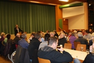 (HV). … stellte sich der Münzenberger SPD-Bürgermeisterkandidat Michael Brückel am vergangenen Donnerstag im Gambacher Bürgerhaus vor. Karl-Heinz Schneider moderierte die rund anderthalbstündige Vorstellungsrunde, in der der SPD-Spitzenmann seine lang-, mittel- und kurzfristigen Ziele klar umriss. Zu Beginn der Veranstaltung gedachten alle Anwesenden der Opfer der Erdbebenkatastrophe in Japan. Auch auf Grundsatzfragen des SPD-Wahlprogramms ging der Herausforderer später ein. Die Fragen aus dem Publikum betrafen hauptsächlich die Themen künftige soziale Infrastruktur der Stadt Münzenberg und erneuerbare Energien. Michael Brückel wies in seinen Ausführungen auch auf haushaltspolitische Fehlstellungen durch die derzeit regierenden Mehrheiten hin, die er bei einem Wahlsieg umgehend korrigieren würde. Unter kräftigem Applaus warb der SPD-Bewerber für das Münzenberger Bürgermeisteramt um die Stimmen zur kommenden Wahl.