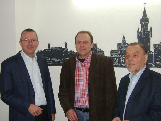 (HV). … stattete unlängst der Münzenberger SPD-Bürgermeisterkandidat Michael Brückel (Mitte) ab. Im Friedberger Kreishaus am Europaplatz informierte sich der Sozialdemokrat über die aktuellsten Entwicklungen der Wetterauer Kreispolitik. Mit von der Partie war auch der ehemalige Vorsitzende der SPD-Kreistagsfraktion, Karl-Heinz Schneider, ebenfalls aus der Burgenstadt stammend.