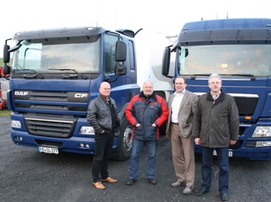 (HV). … besucht derzeit der SPD-Bürgermeisterkandidat Michael Brückel. Der Herausforderer vom derzeitigen CDU-Amtsinhaber will mit der heimischen Gewerbewelt eine enge Kontaktaufnahme pflegen, um dabei Möglichkeiten der politischen Unterstützung auszuloten. Auf dem Bild (vl.): SPD-Parteichef Manfred Tschertner, Speditionsunternehmer Birger Löhwing, SPD-Bürgermeisterkandidat Michel Brückel und Stadtrat Rudi Haas.