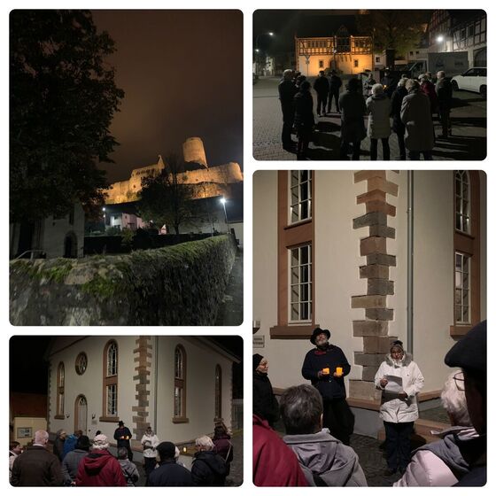 An der jährlich wechselnden Wegstrecke in den Stadtteilen Gambach und Münzenberg sind jeweils die Menschen gebeten, ein Licht in ihre Fenster zu stellen, um ein Zeichen gegen Fremdenhass, Ausgrenzung und Antisemitismus zu setzen. Viele Lichter waren diesmal in den Fenstern der Münzenberger Altstadt zu sehen, als die Gedenkgänger vom Marktplatz über den Steinweg, Badgasse, Tränkgasse und Eichergasse zur ehemaligen Synagoge gelangten.